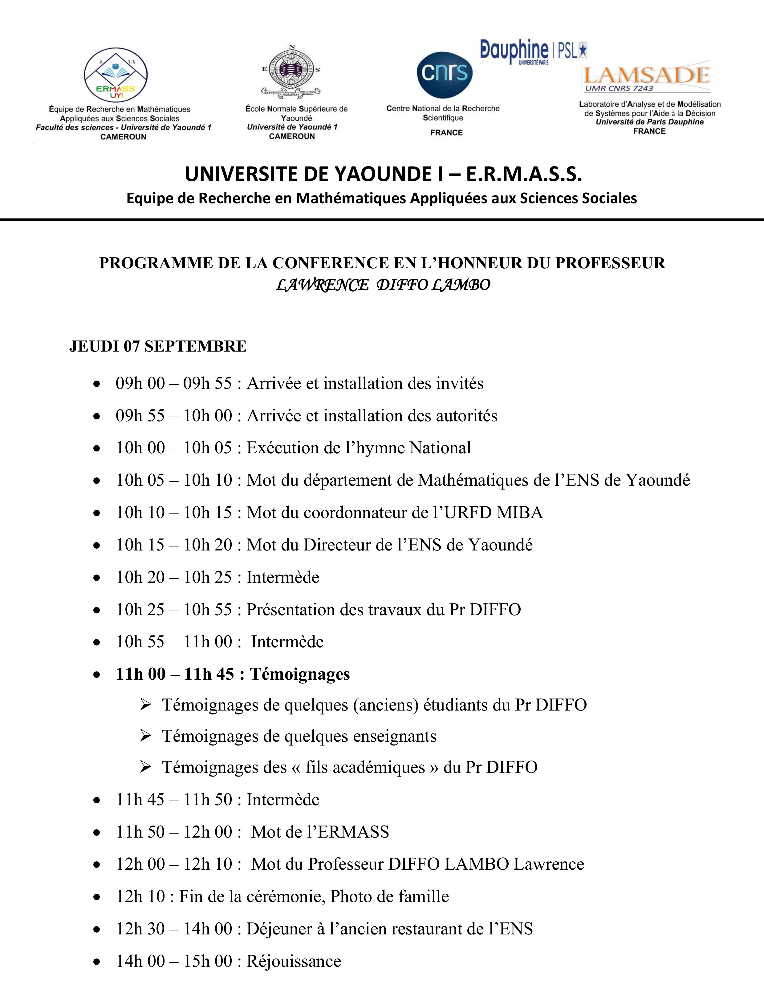 Lieu : École Normale Supérieure Yaoundé – Université de Yaoundé I